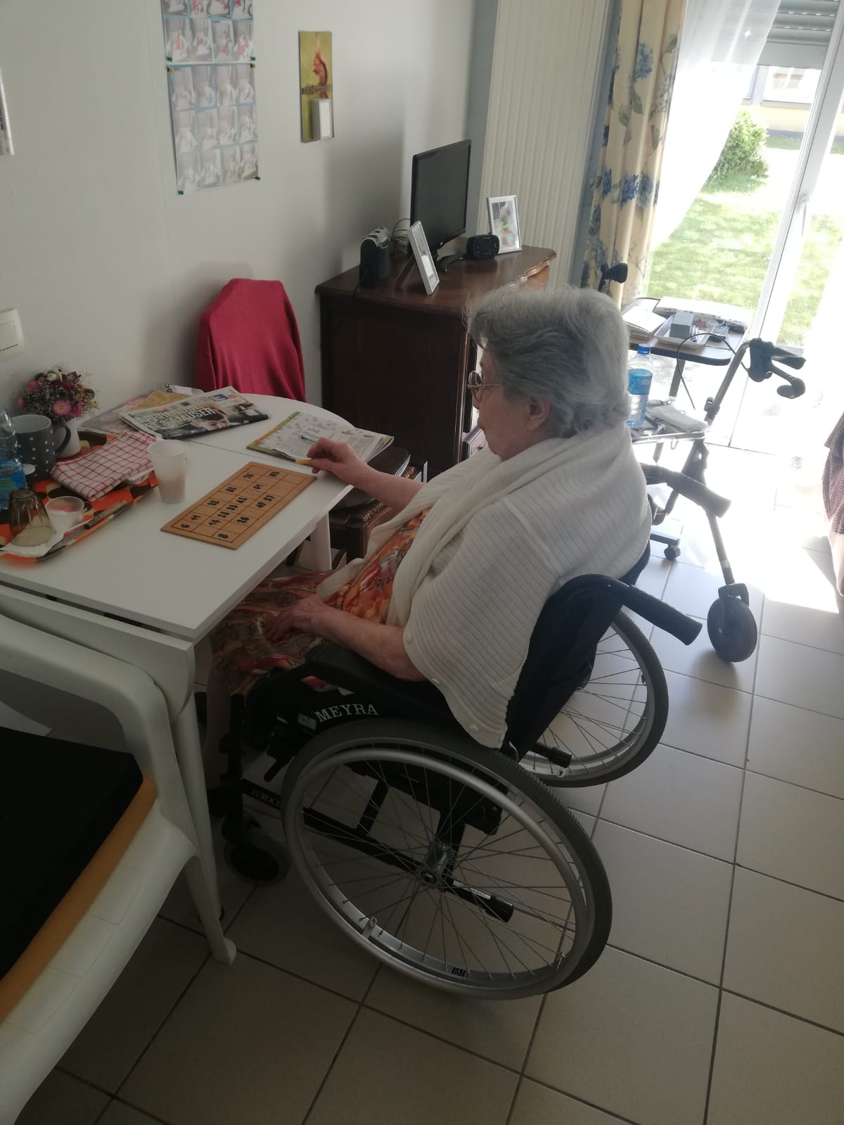 Comme chaque semaine, une pochette d’activités est distribuée à certains résidents : chansons à trous, proverbes à terminer, mots fléchés, articles et menus…