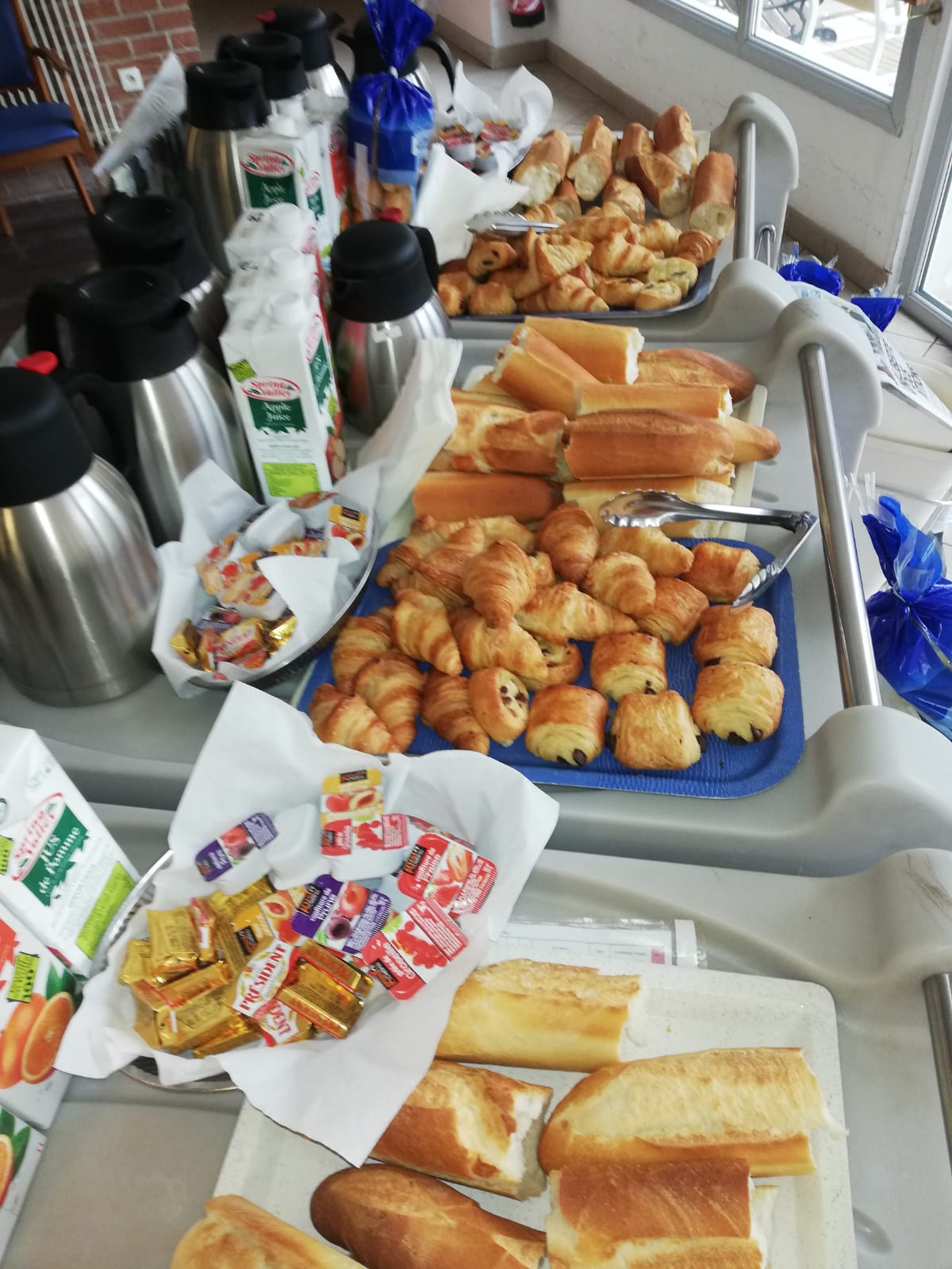 Petit déjeuner gourmand offert par de l’association de la résidence. Au menu croissants, beignets aux raisins, pains au chocolat. Tous les résidents ont pu en bénéficier même les repas accompagnés puisqu’il y avait des petit pains au lait très moelleux.