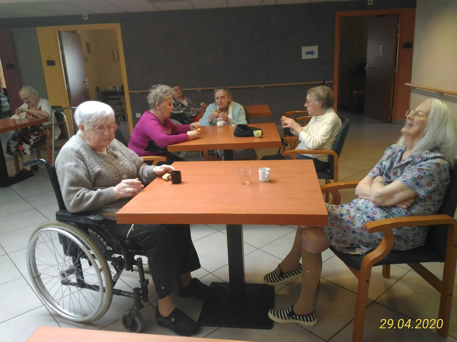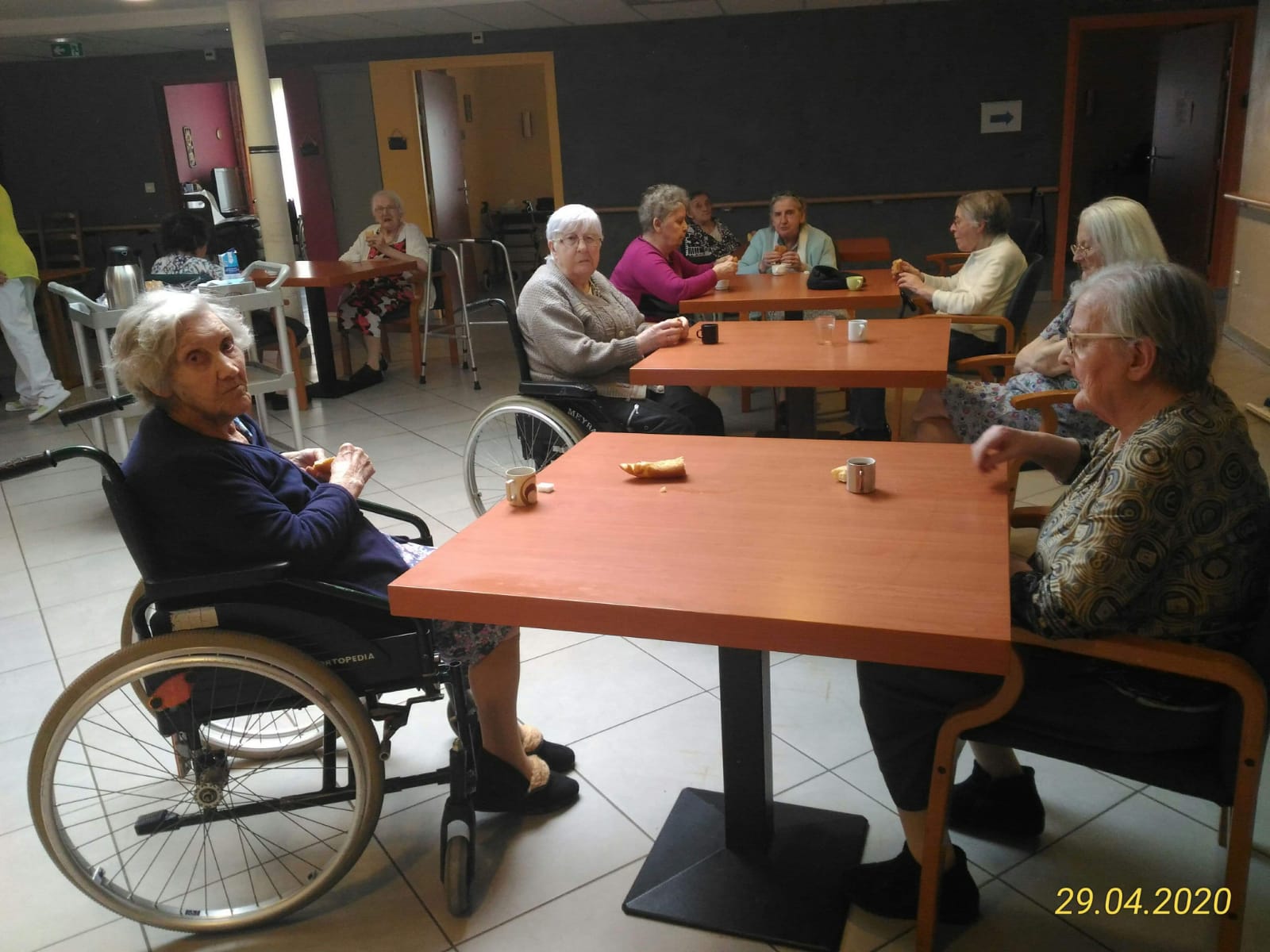Désormais la résidence est divisée en 4 espaces de vie avec pour objectif que chaque résident puisse avoir un espace de détente tout en respectant les mesures de confinement. Les repas se font en chambre.
