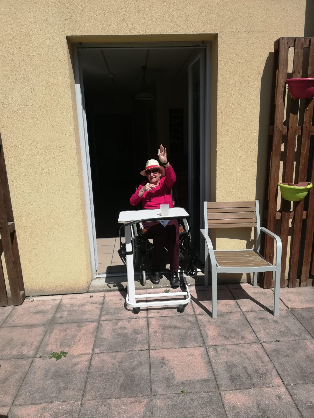 Une grande partie des résidents a pu profiter du soleil dans le jardin, toujours l’un après l’autre.